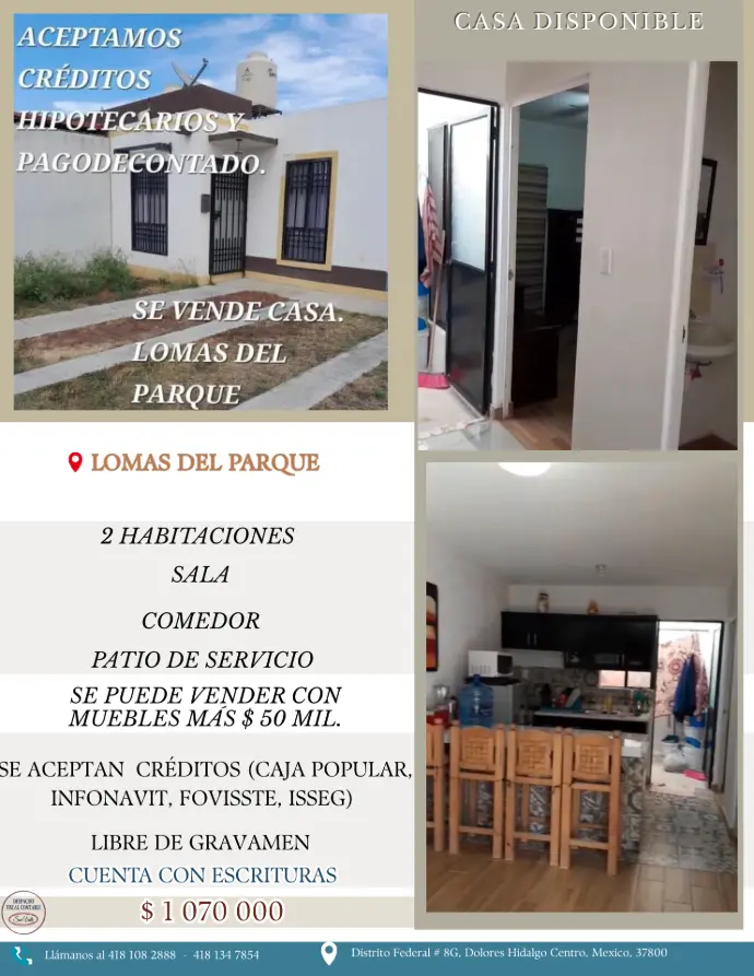 - SE ACEPTAN CRÉDITOS (Caja popular, Infonavit, Fovissste, Isseg)
